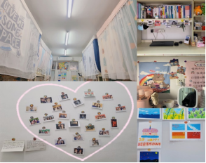 疫情之下,我们的友谊在“抬头不见低头见”中迅速升温,一起学习,吃饭,娱乐。通过装饰的油画图片,陶冶我们的情操,宁静致远。墙上各种的动漫人物,展现着我们的青春活力。我们共创快乐,在最美的青春里,留下彼此难忘的回忆。