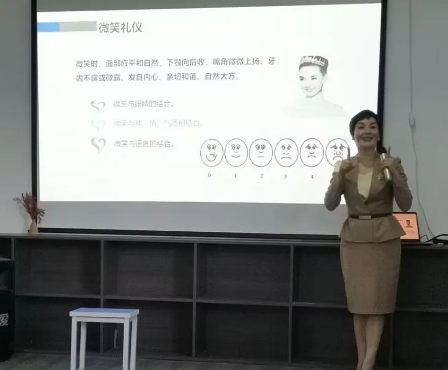 来到正式环节,小娟老师引用孔子的“不学礼,无以立”来阐述礼仪的概念。随后分别从形象礼仪、举止礼仪、沟通礼仪、接待礼仪等方面对同学们进行指导。