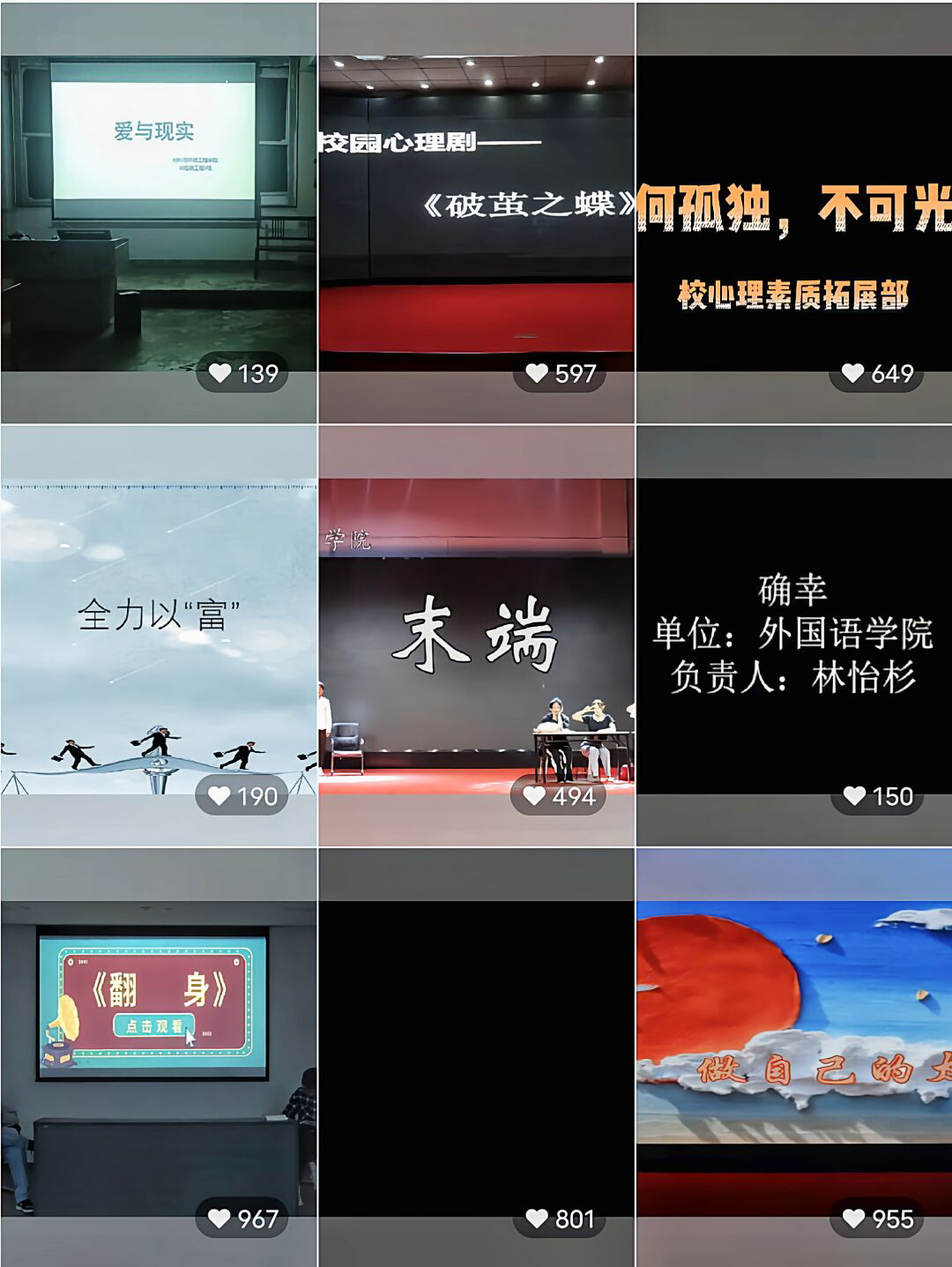 校园心理情景剧的举办旨在通过演绎校园生活、家庭中的人和事,为同学们营造互助的氛围和平台。该比赛帮助大家认识到自己以及他人的心理状况,学会自爱和善待他人。从而更加积极自信地面对生活和学习,走向更加光明和美好的未来。