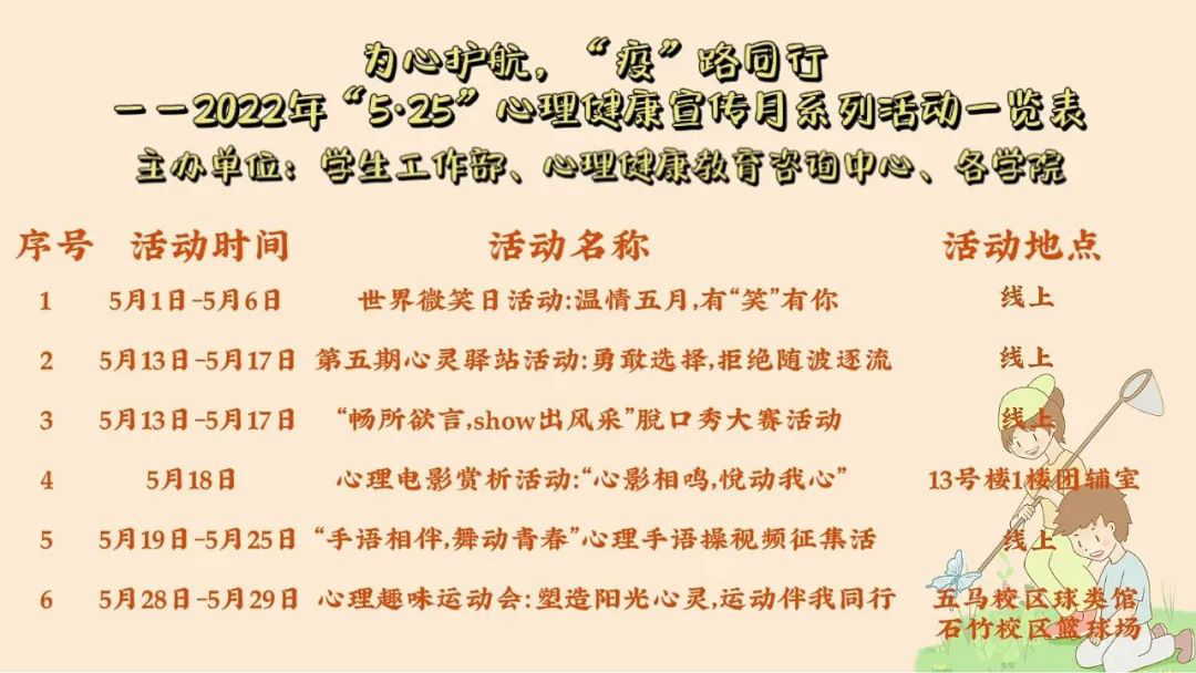 2022年“5·25”大学生心理健康宣传月活动开始啦!
