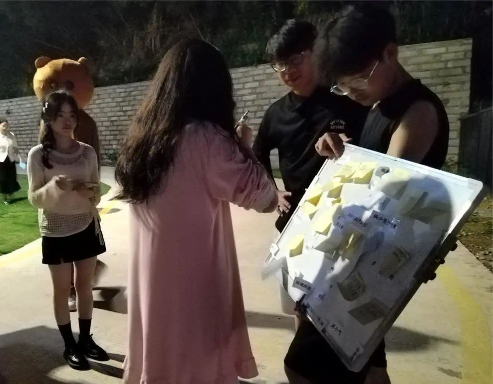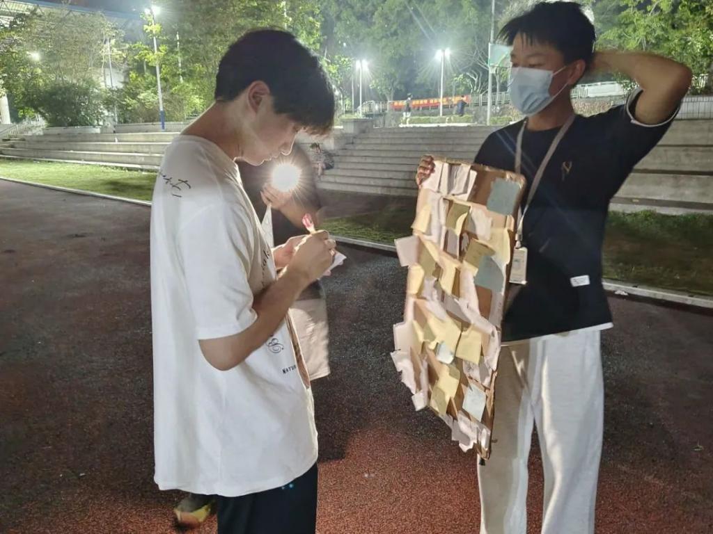 同学们将写有各种刻板印象的标签撕下,并写下自己对于标签的看法和期许,从此时此刻开始拒绝标签化。五颜六色的便签纸将最初的标签替换,大家的期许在晚风中起舞。
