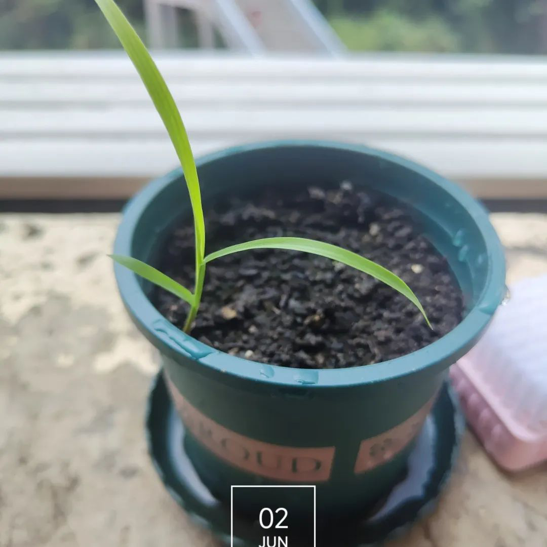 5月27日第一个星期过去了,从特别边的角落里长出了一片叶子,天哪。终于看见绿了,担心了好多天,怕阳台没有太阳,舍友也关注了好多天!6月2日小草长得巨快!可以看出来他是一颗草了,我的花呢?又发现旁边有一颗很小很小的芽,还带着苞,这应该就是花了!不过才一朵。