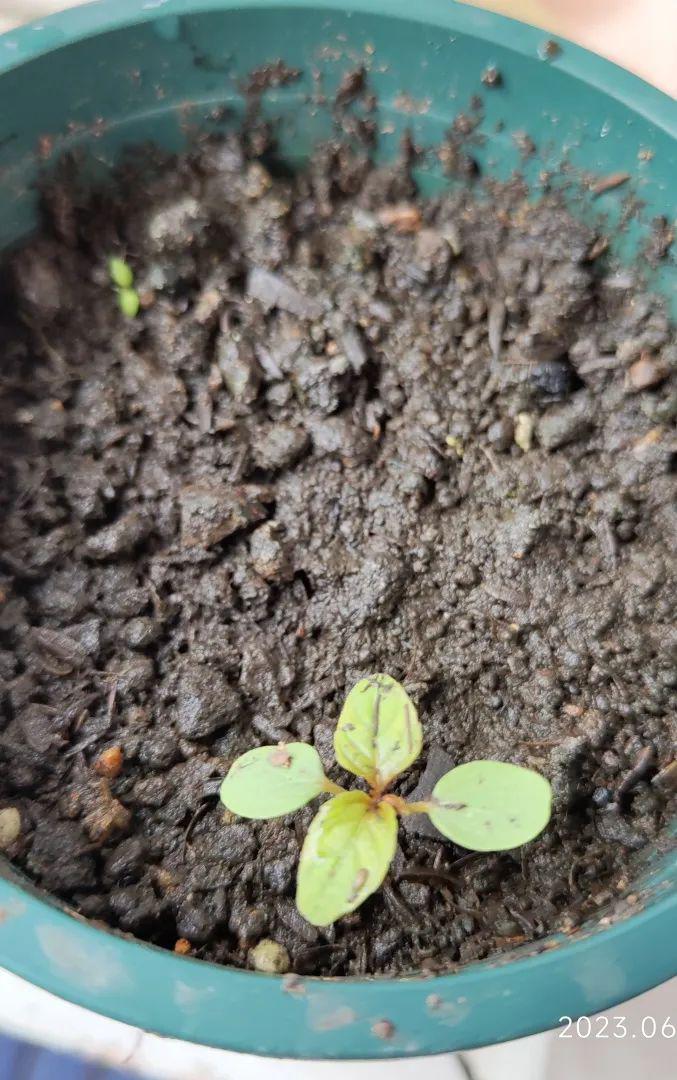 6月3日天气晴,这几天忙,有时候会忘记浇水,然后就干巴土了。思考好几天了,种子怎么还不发芽!今天可算有苗头了!这个叶子怎么和别人盆的叶不大一样,难道是土里带的杂草?老实说,虽然我对苗期盼着要快快长大!但是这个碗勺筷+随随便便一点土的组合真的有点丑。算了,快快长大,希望到时候长一碗的花!