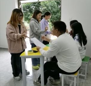 在第一个环节中,同学们有序地与工作人员进行互动,带着工作人员提出的有关世界精神卫生日的问题依次与其进行猜拳,与三位工作人员猜拳均获胜的同学便能得到问题的答案。猜拳的过程充满了趣味性,同学们或屡屡得胜而轻松得到答案,或因遭到失败而无奈地重头再来,无论过程顺利与否,同学们都在此环节中放松身心并收获到了知识。