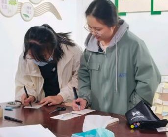 得到了完整的卡片后,同学们便开始在卡片上进行创作。在创作的过程中,同学们用文字记录下美好的生活点滴,以线条和色彩描绘出自己心中理想的精神世界。