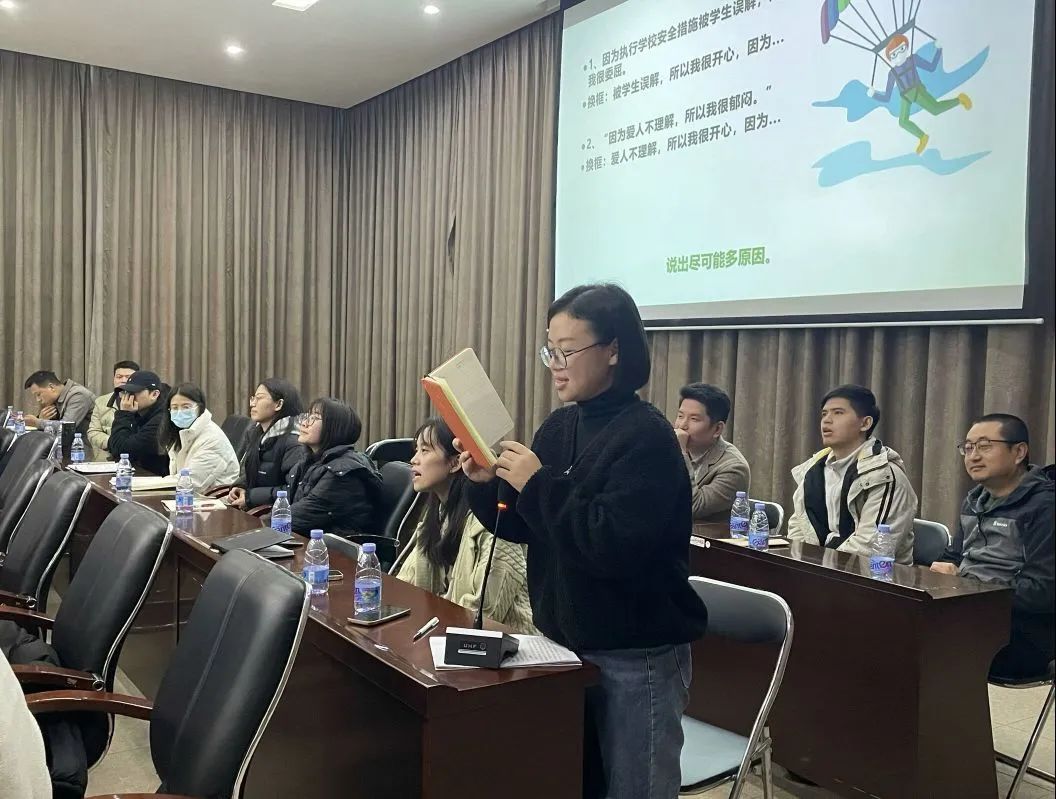 本次培训主要围绕认识情绪压力、减压妙招、提升心理能量的方法三方面具体展开。在正式进行培训前,黄老师从在“曙光救援队”对他人进行心理疏导的两起案件导入,向老师们询问了最近的困扰和压力源,在认真了解完老师们的实际情况后,黄老师为大家提供了能进行自我放松的“本体疗法”,并组织开展“马兰花开”、“相亲相爱一家人”等游戏来帮助大家热身,现场氛围逐渐活跃起来,老师们的情绪也在游戏过程中得到了放松。