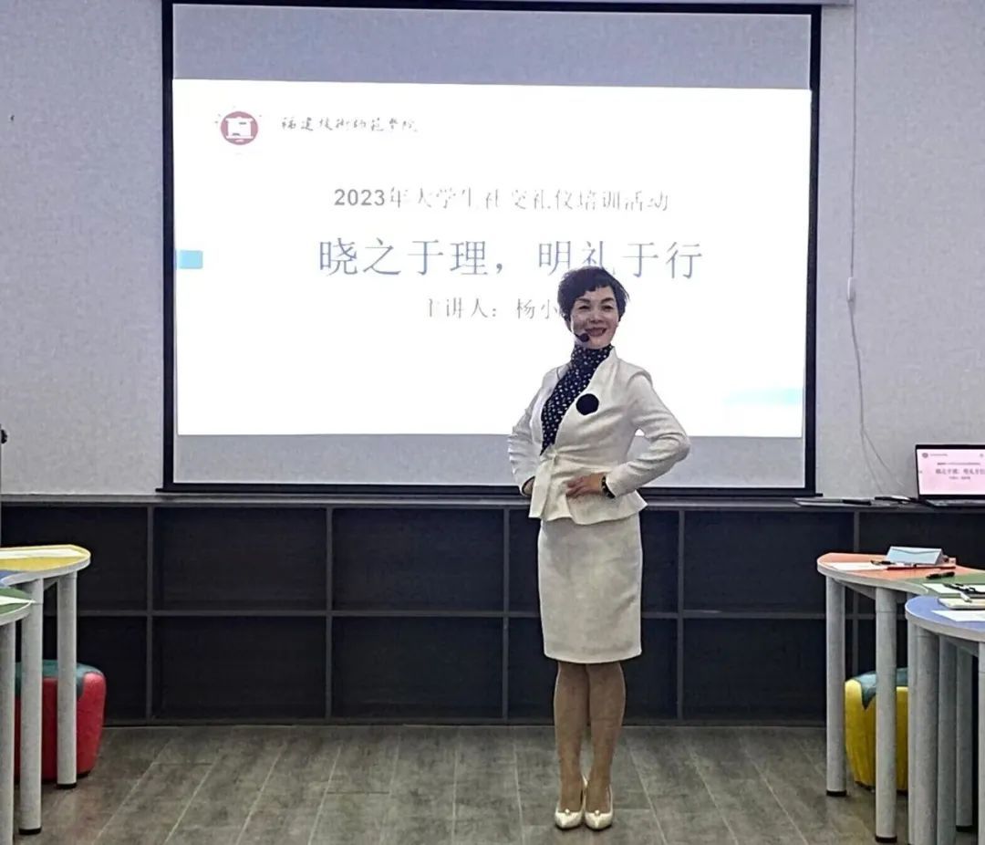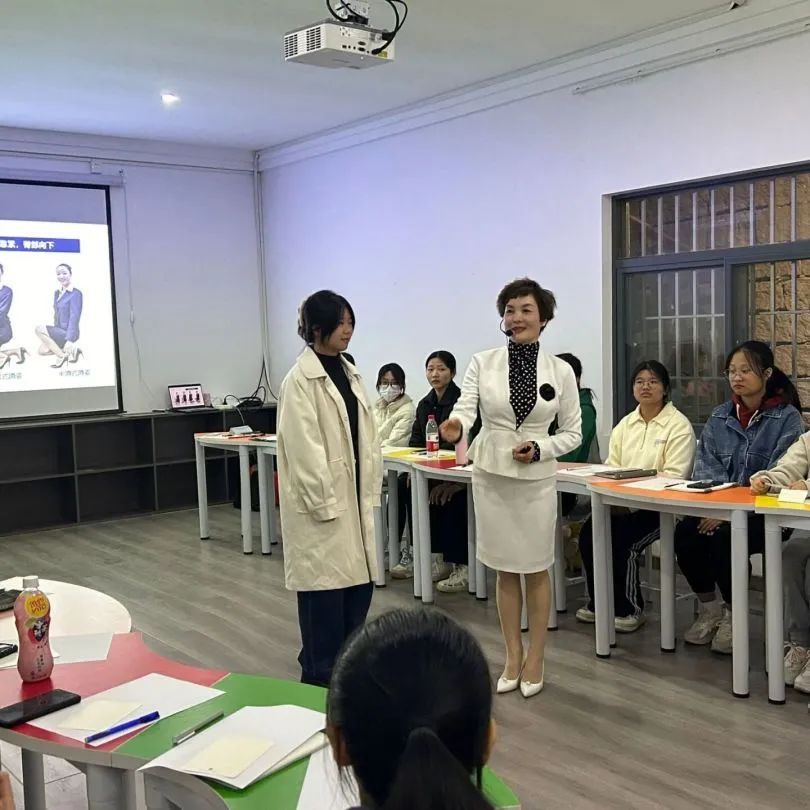 杨老师引用孔子“不学礼,无以立”的故事向同学们详细阐述了礼仪的概念,并分别从形象礼仪、举止礼仪、沟通礼仪、接待礼仪等方面对同学们进行指导。