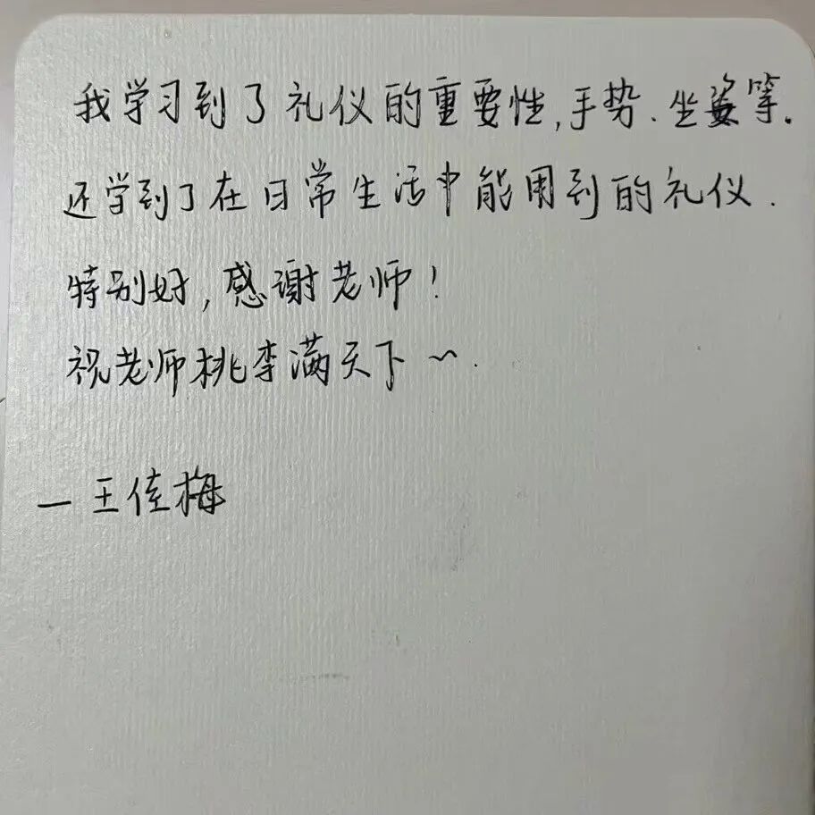 此次礼仪培训活动让同学们不仅学到了礼仪方面的知识,还学会如何更加礼貌地对待他人,尊重他人,助力同学们在今后的成长过程中不断提升自我形象,更自信地展示青春风采。