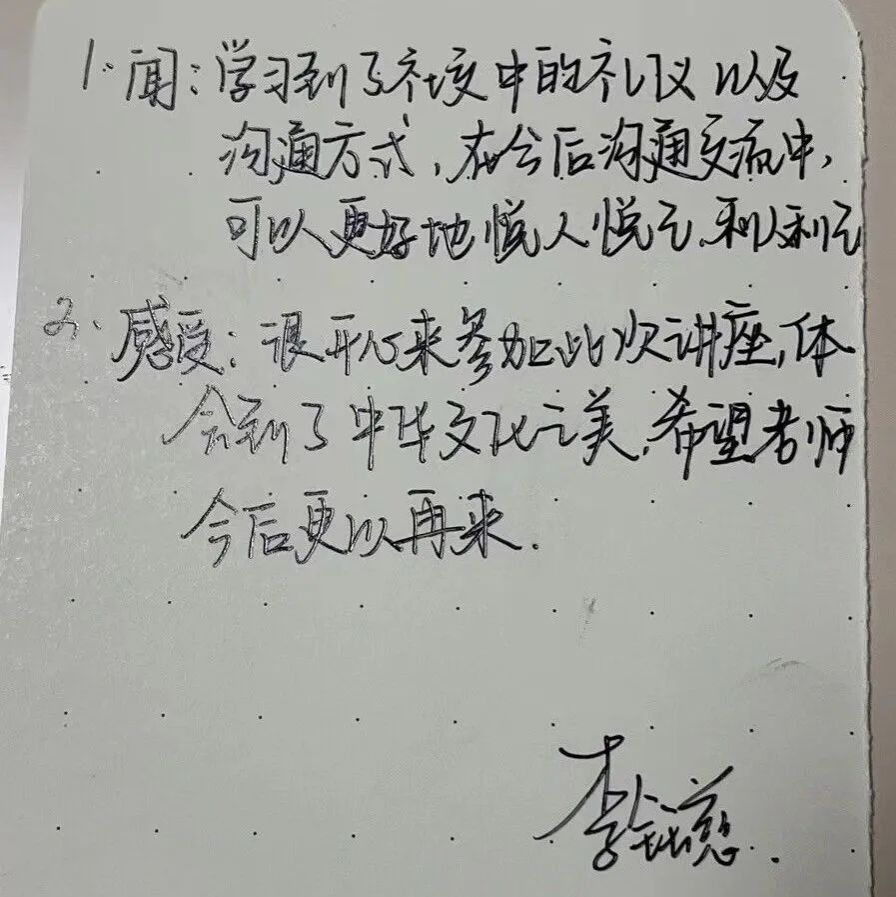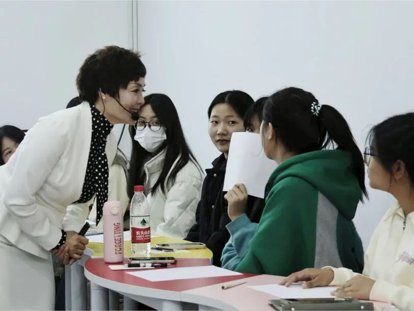 最后是接待礼仪。杨老师以生活中最常用的姿势为例,亲自向同学们示范了如何进行接受和传递,并邀请同学进行互动。随后,杨老师向大家提出了金字四阶——语之根“语言基本功”;语之叶“语言信息传递的完整”;语之花“让人愉悦的交流方式”和语之果“利人利己,悦人悦己”。