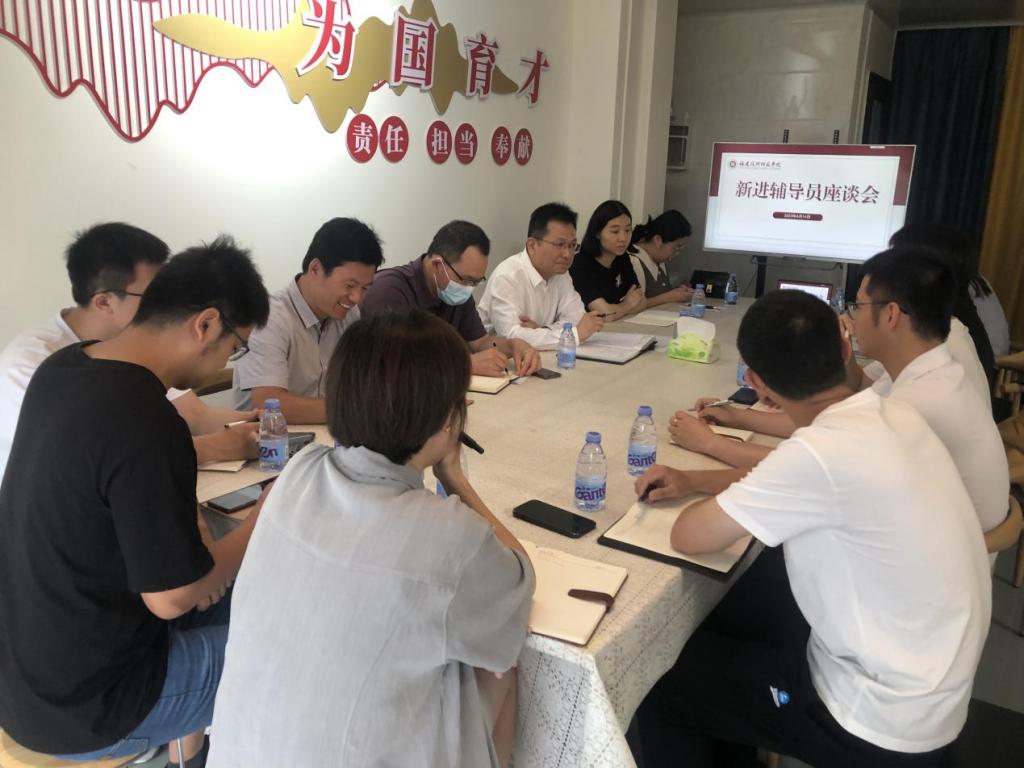 6月14日上午,我校在五马山校区辅导员之家召开了新进辅导员座谈会。校党委副书记林海峰出席座谈会,并与辅导员们亲切交流,学生工作部相关人员、2023年新进辅导员以及相关学院团委副书记参加活动。