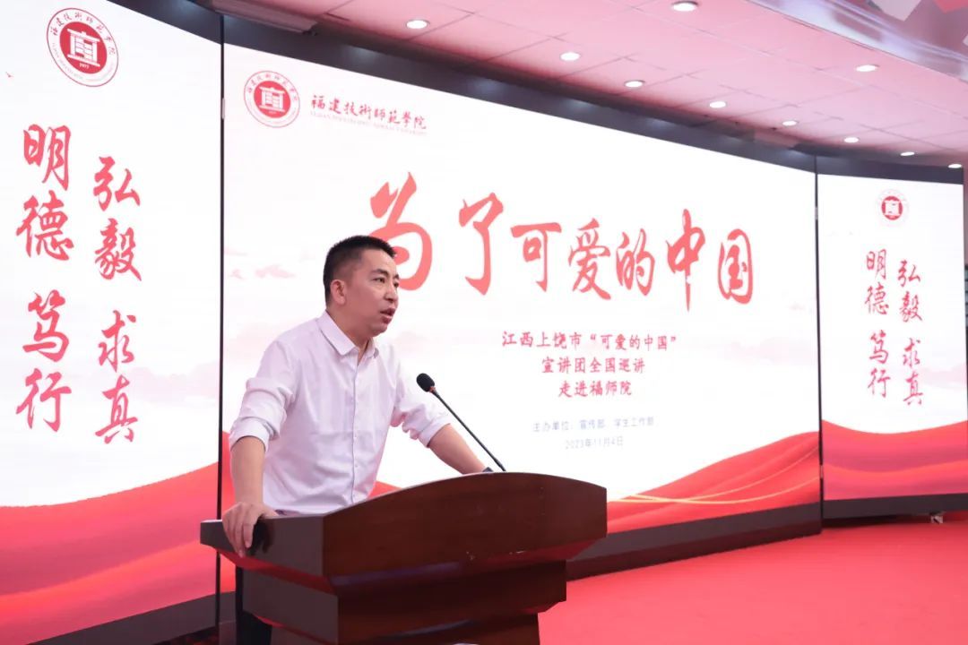 11月4日上午,为持续巩固深化主题教育成果,教育引导广大师生坚定理想信念,传承红色基因,来自革命烈士方志敏故乡——江西省上饶市弋阳县“可爱的中国”全国巡回宣讲团受邀来校为师生带来一堂生动的思政课。上饶市委宣传部副部长吴晓俊、弋阳县委宣传部副部长张赛莲一行和我校宣传部、学生工作部负责人、辅导员及2023级新生代表参加了活动。