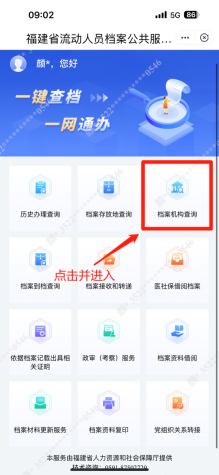 2.闽政通APP-【流动人员档案服务】——【档案机构查询】